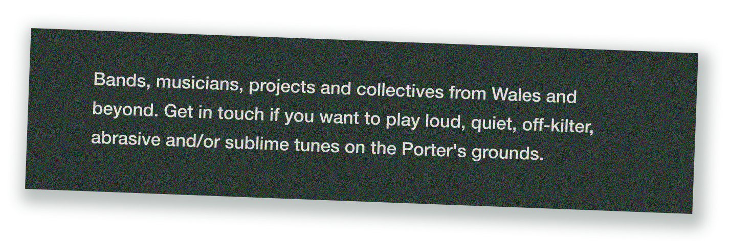OUR PORTER’S PRESENT’S EVENTS ARE CURATED FIRST & FOREMOST BY OUR BEAUTIFUL COMMUNITY. HOWEVER, IF YOU WOULD LIKE TO BOOK A SHOW WITHOUT THE HASSLE OF ALL THE ORGANISATION THEN PLEASE SEE OUR LIST OF ENTRUSTED PROMOTERS BELOW AND GET IN TOUCH WITH THEM!